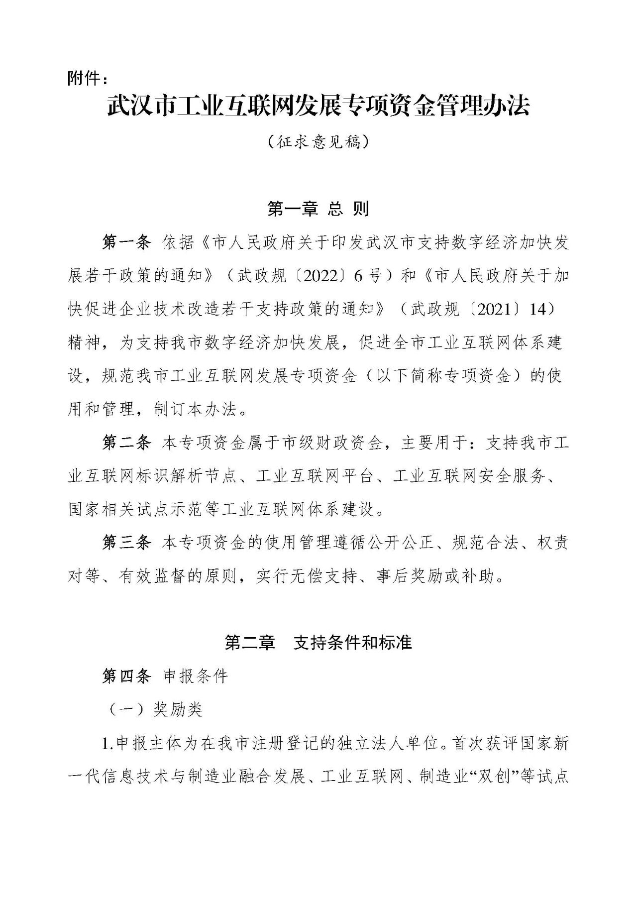 附件:《武汉市工业互联网发展专项资金管理办法》(征求意见稿)